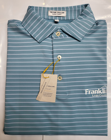 Men's Peter Millar - Cyan Green with White & Blue Stripe Polo