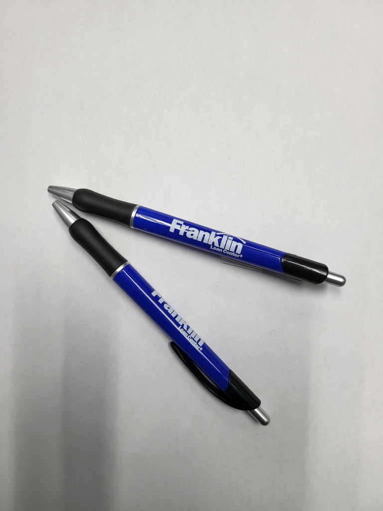 - Ergonomic shape and chrome trim complement the retractable, translucent plastic writer.